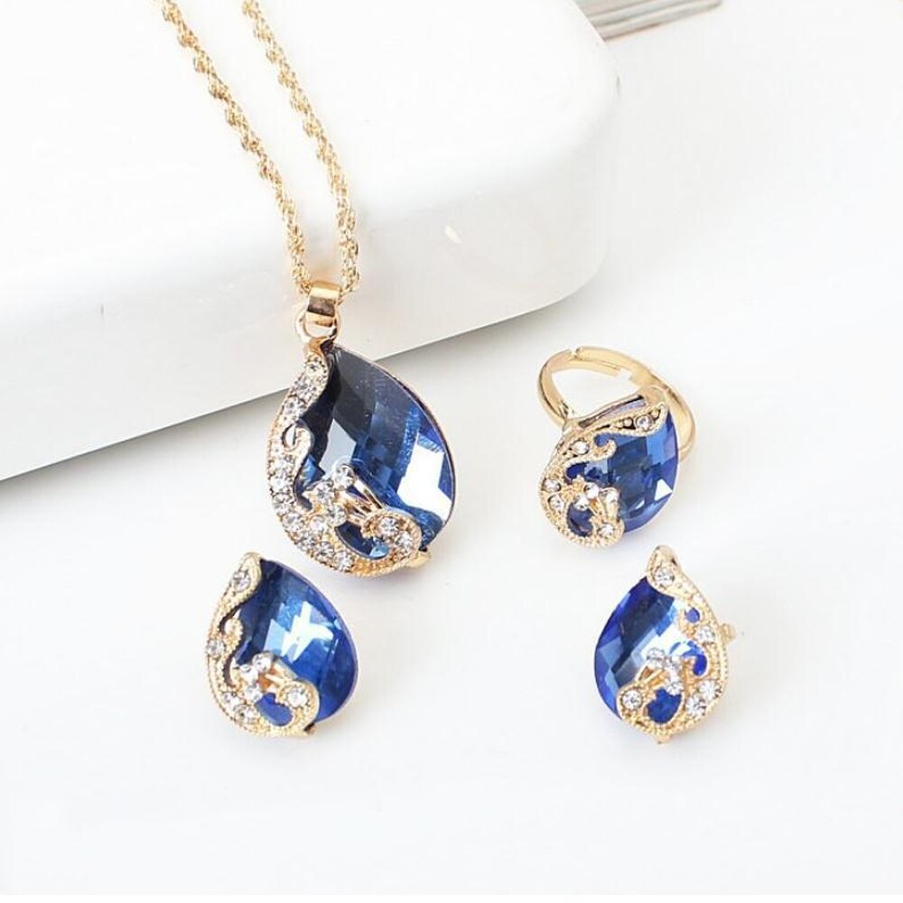 Conjunto Colar Brincos e Anel Gota com Cristais