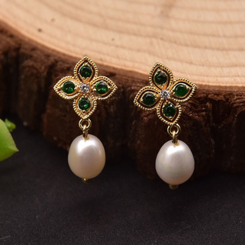 Nosso Brinco Flor com Pérolas Barrocas Naturais e cristais de zircônia, conta com um design exclusivo e...