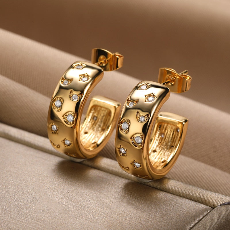 Nosso Brinco Meia Argola Cravejado com Cristais, conta com um design exclusivo e com cada detalhe...