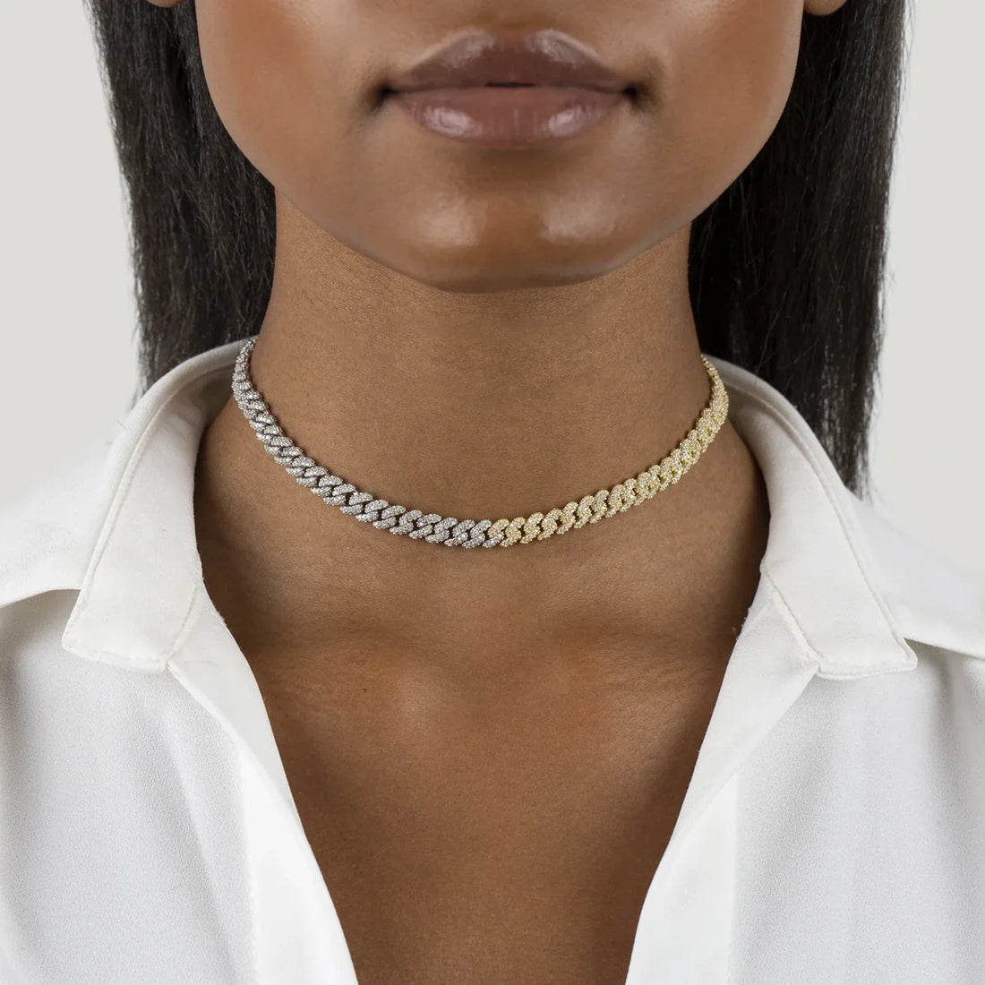 Colar Cravejado Ice Prata e Dourado Zircônia