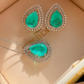 Conjunto Colar e Brincos Gota Turmalina - Prata