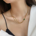 Colar Dourado com Pingente Cristal Verde