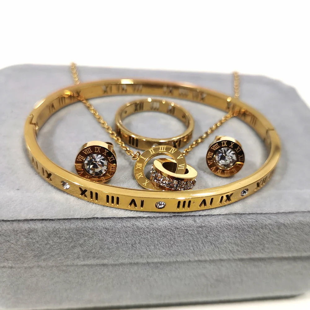Conjunto Colar Bracelete Brincos e Anel Roman