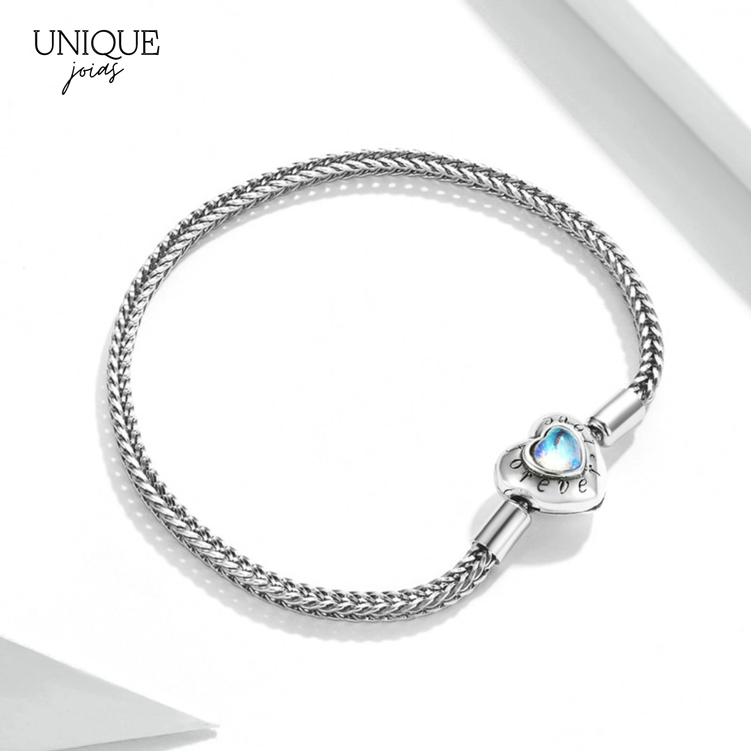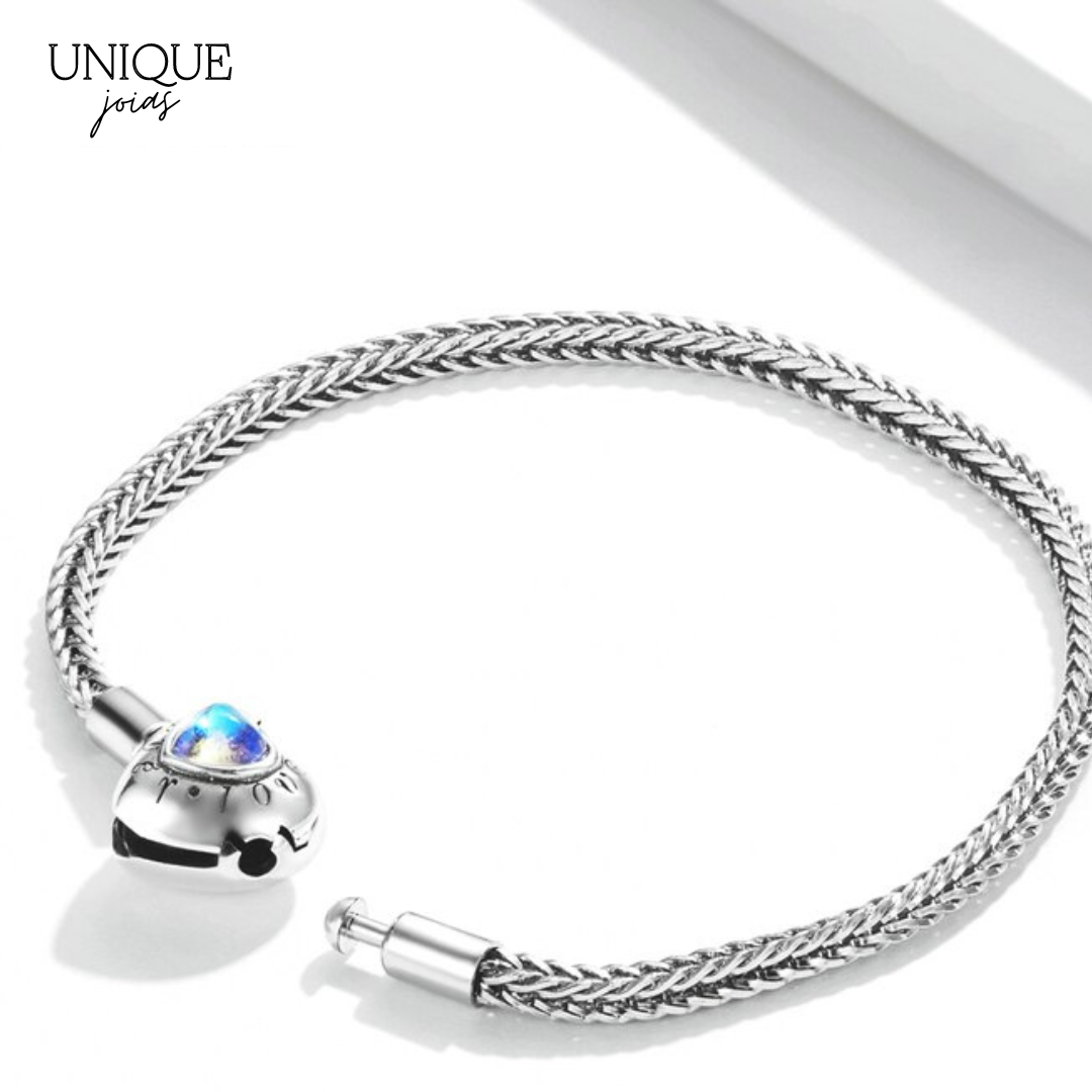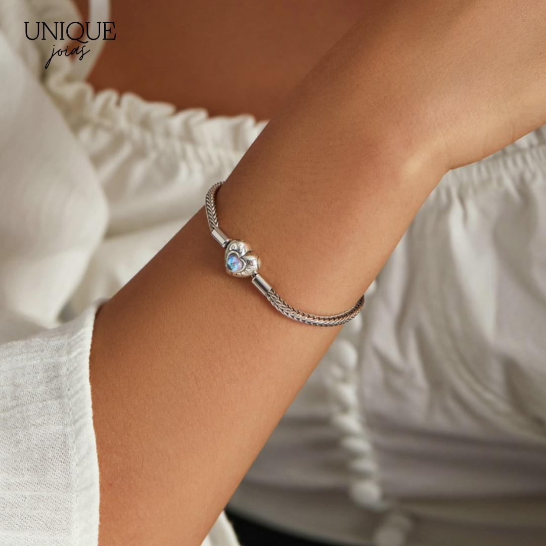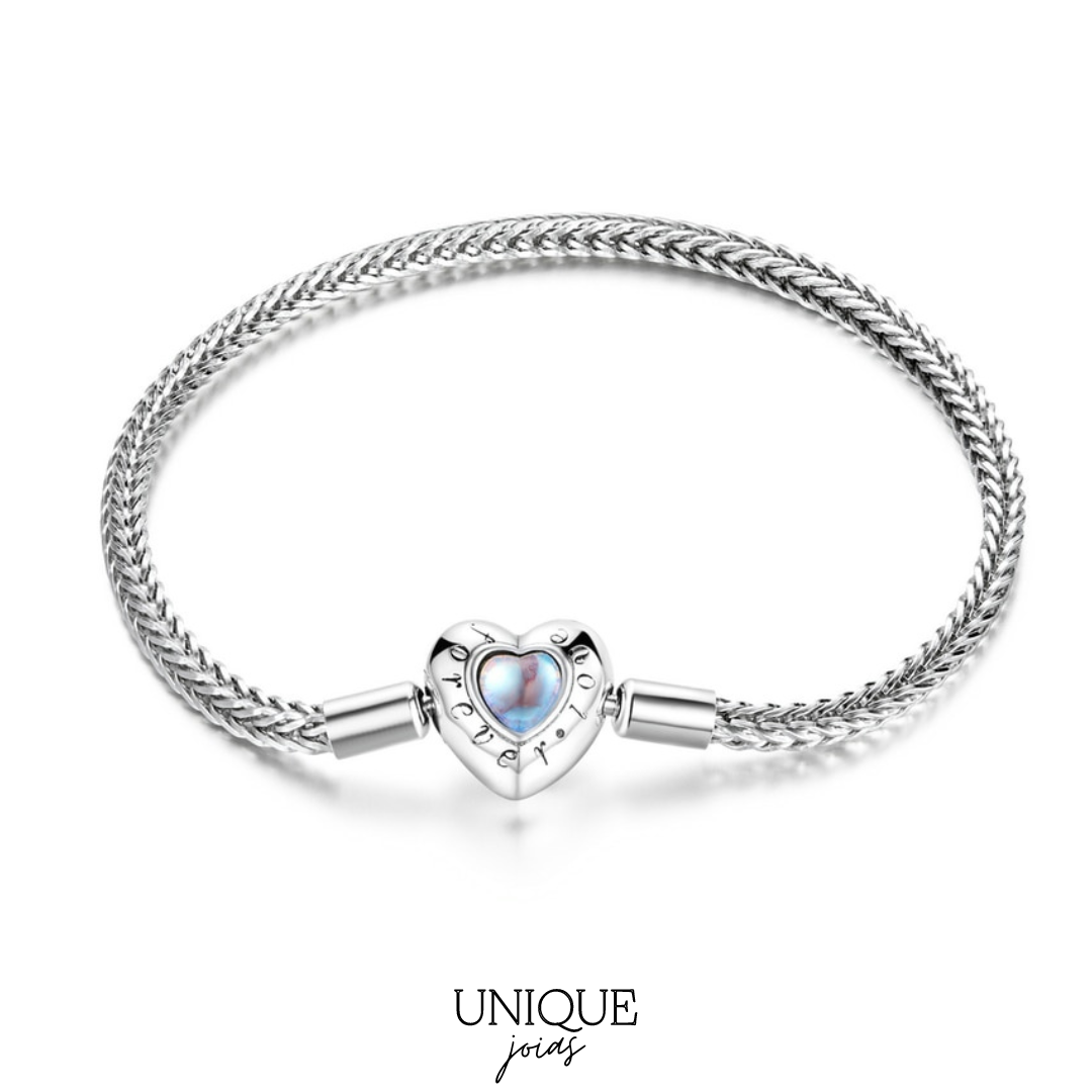 Pulseira de Berloque Trançada com Fecho Coração Fantasy - Prata 925