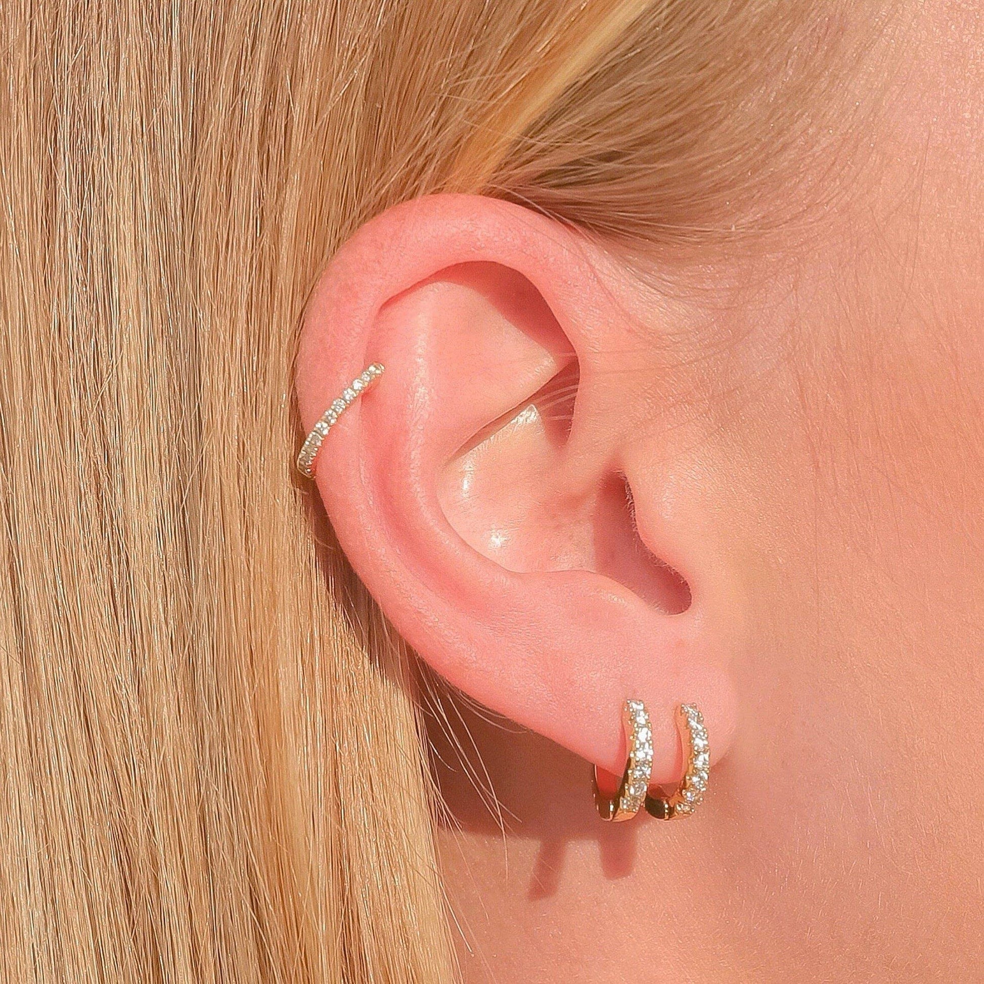 Brinco Argolinha Dourada Cravejada com Zircônia