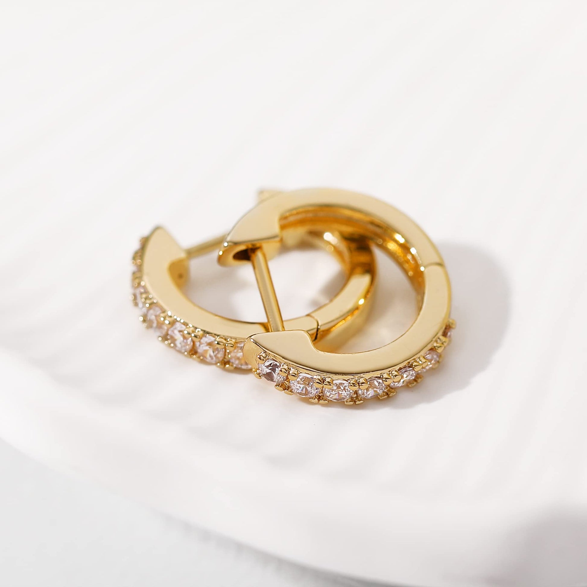 Destaque-se com o Brinco Argolinha Dourada Cravejada com Zircônia. Seu design clássico e dourado é perfeito para qualquer ocasião. Adquira já esse brinco versátil e adicione um toque de elegância ao seu visual