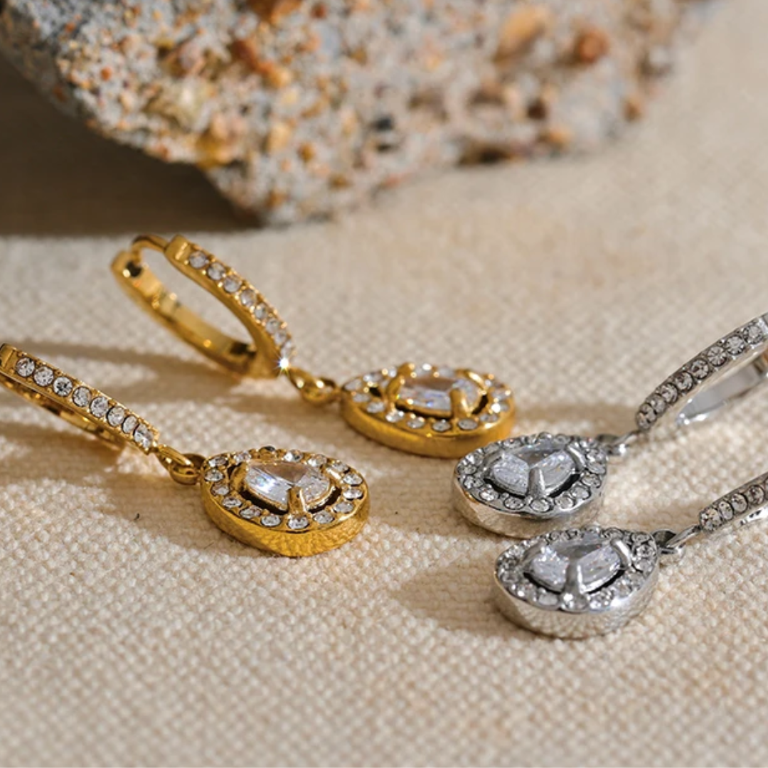 Nosso Brinco com Pingente Cravejado, conta com um design exclusivo e com cada detalhe pensado para completar e trazer mais beleza ao estilo de cada mulher. Você vai se sentir mais bonita e deixar sua autoestima lá em cima. Prezamos pela alta qualidade das joias, os melhores materiais, livres de uso, chumbo e todos os hipoalérgicos.