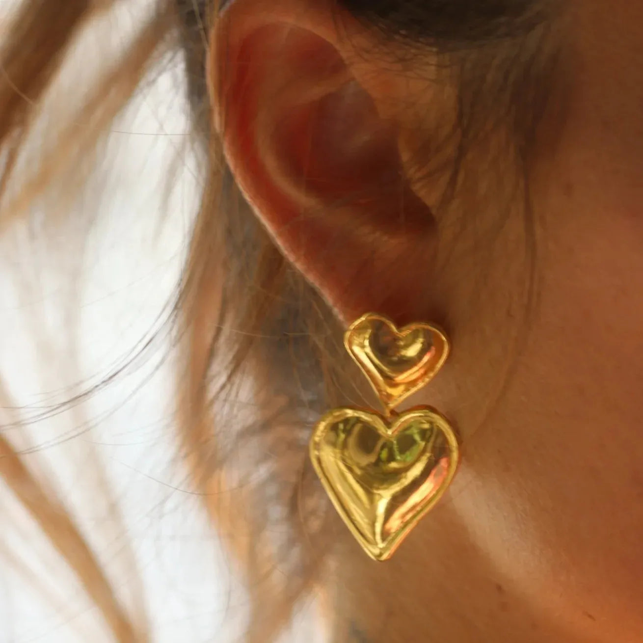 Nosso Brinco Duplo Coração Dourado, conta com um design exclusivo e com cada detalhe pensado para completar e trazer mais beleza ao estilo de cada mulher. Você vai se sentir mais bonita e deixar sua autoestima lá em cima. Prezamos pela alta qualidade das joias, os melhores materiais, livres de uso, chumbo e todos hipoalérgicos.