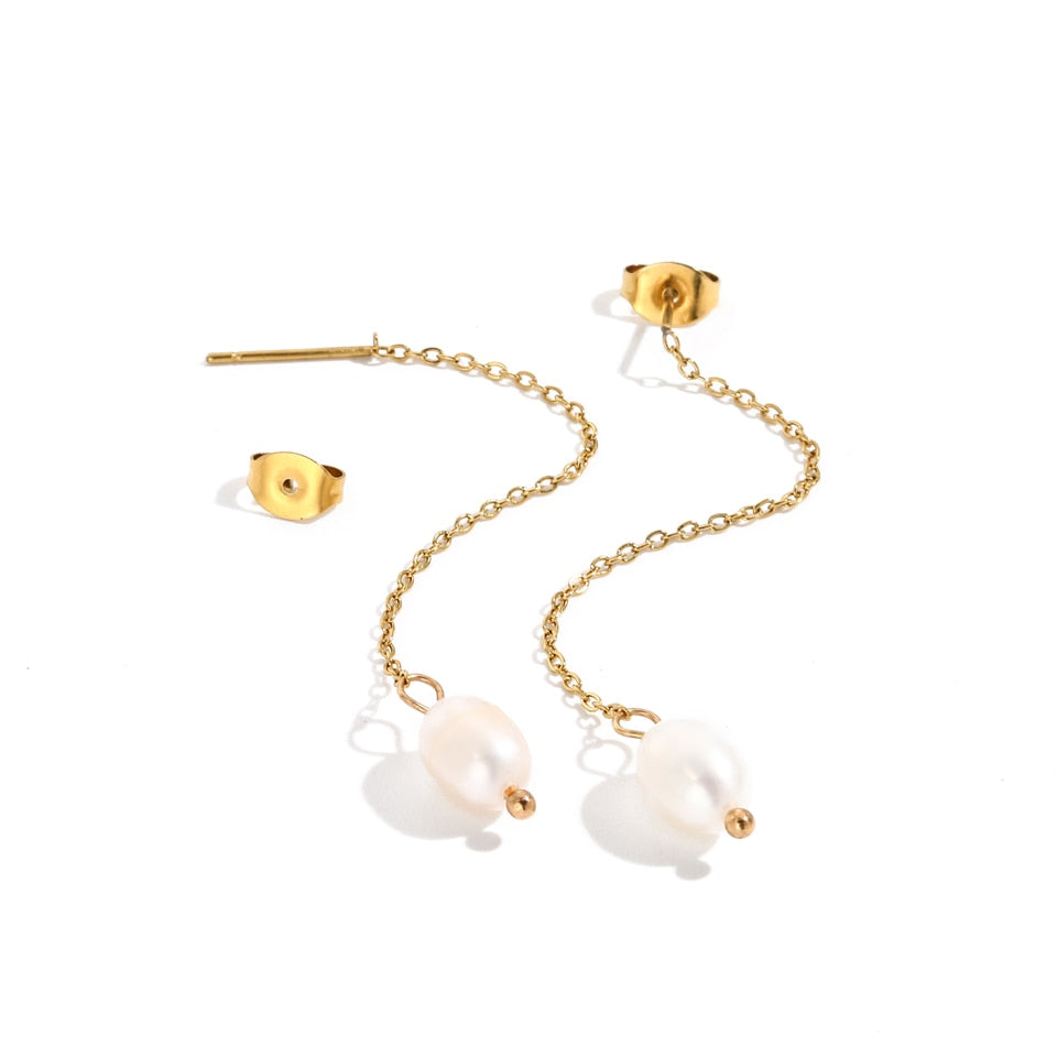 Brinco Longo Luxe com Pérola Natural