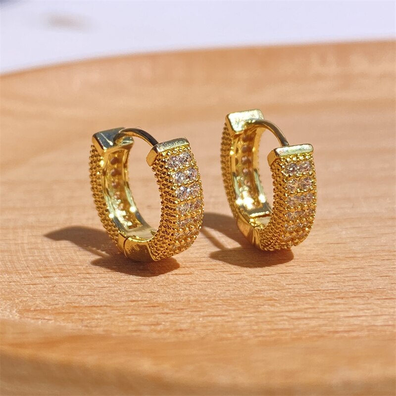 Brilhe com sutileza usando o Brinco Mini Argola Cravejada com Zircônia. Seu design delicado e os cristais brilhantes adicionam um toque de elegância ao seu visual. Perfeito para todos os momentos.