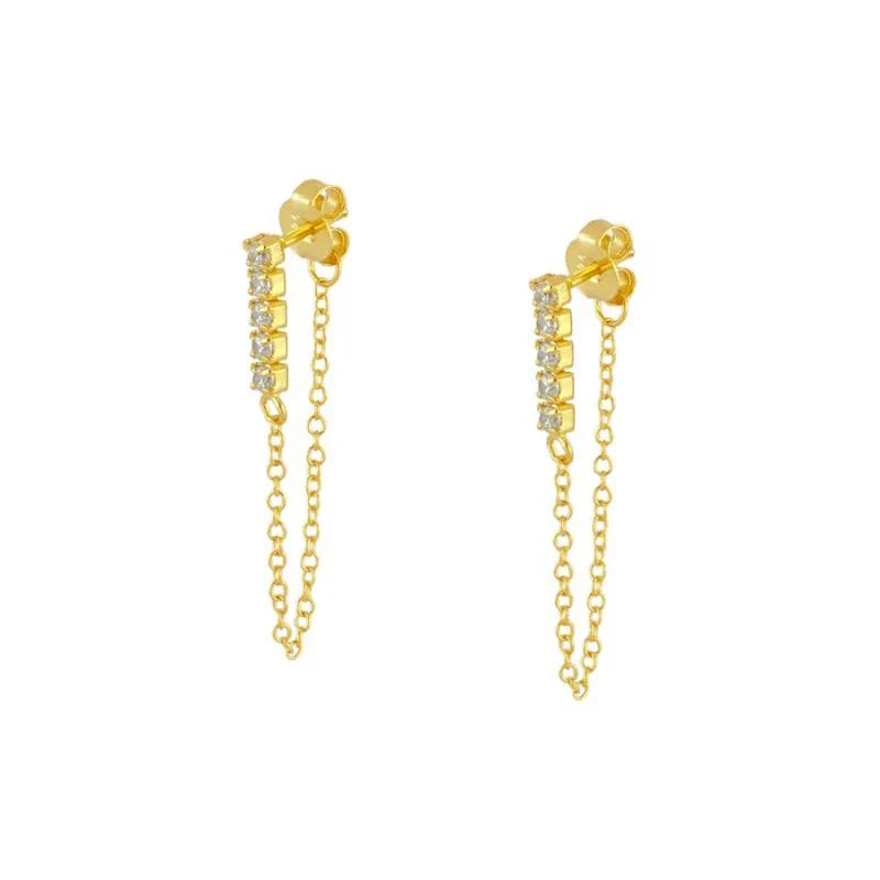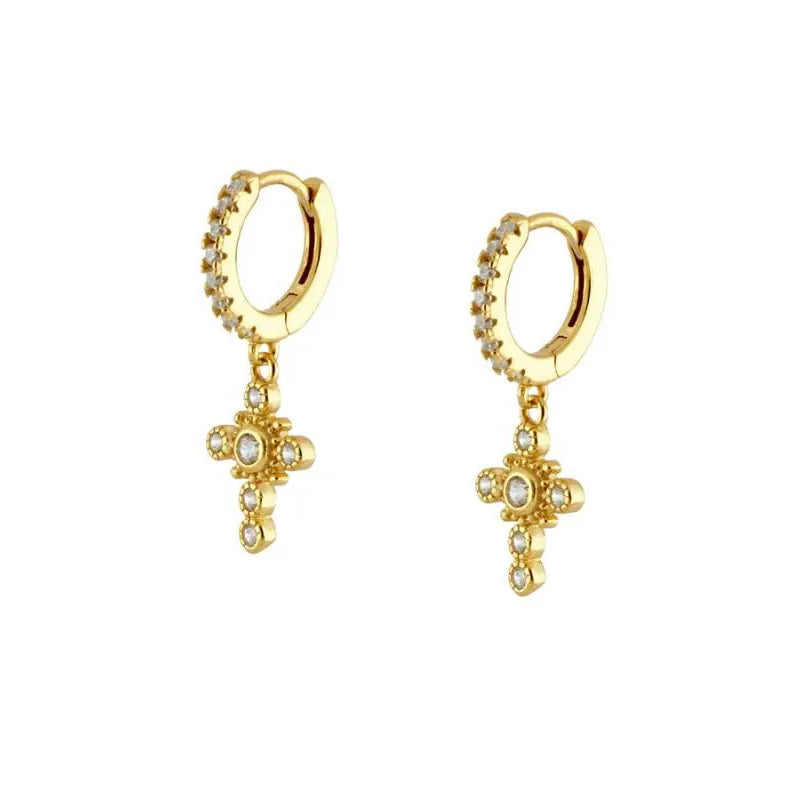 Brincos Dourados Cravejados de Zircônia 7pçs