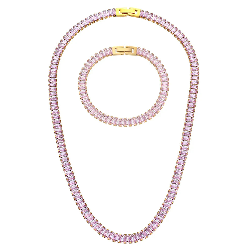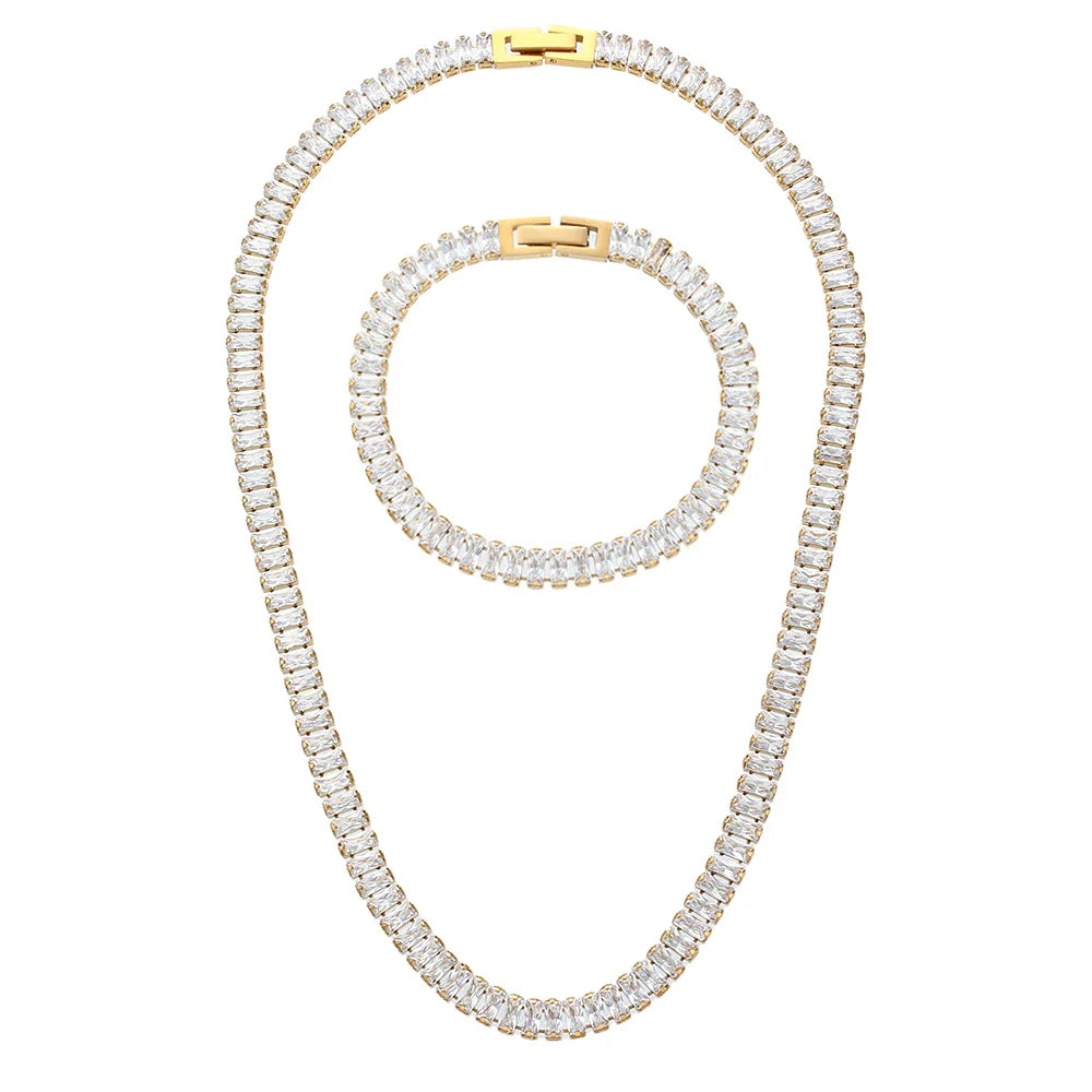 Conjunto Colar e Pulseira Cravejada com Zircônia