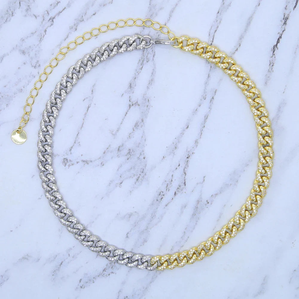 Colar Cravejado Ice Prata e Dourado Zircônia