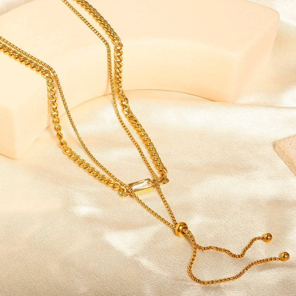 Colar Duplo com Cristal de Zircônia