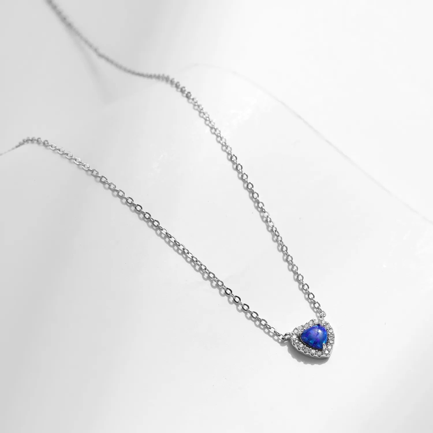 Colar em Prata 925 com Pingente Coração Pedra Opala