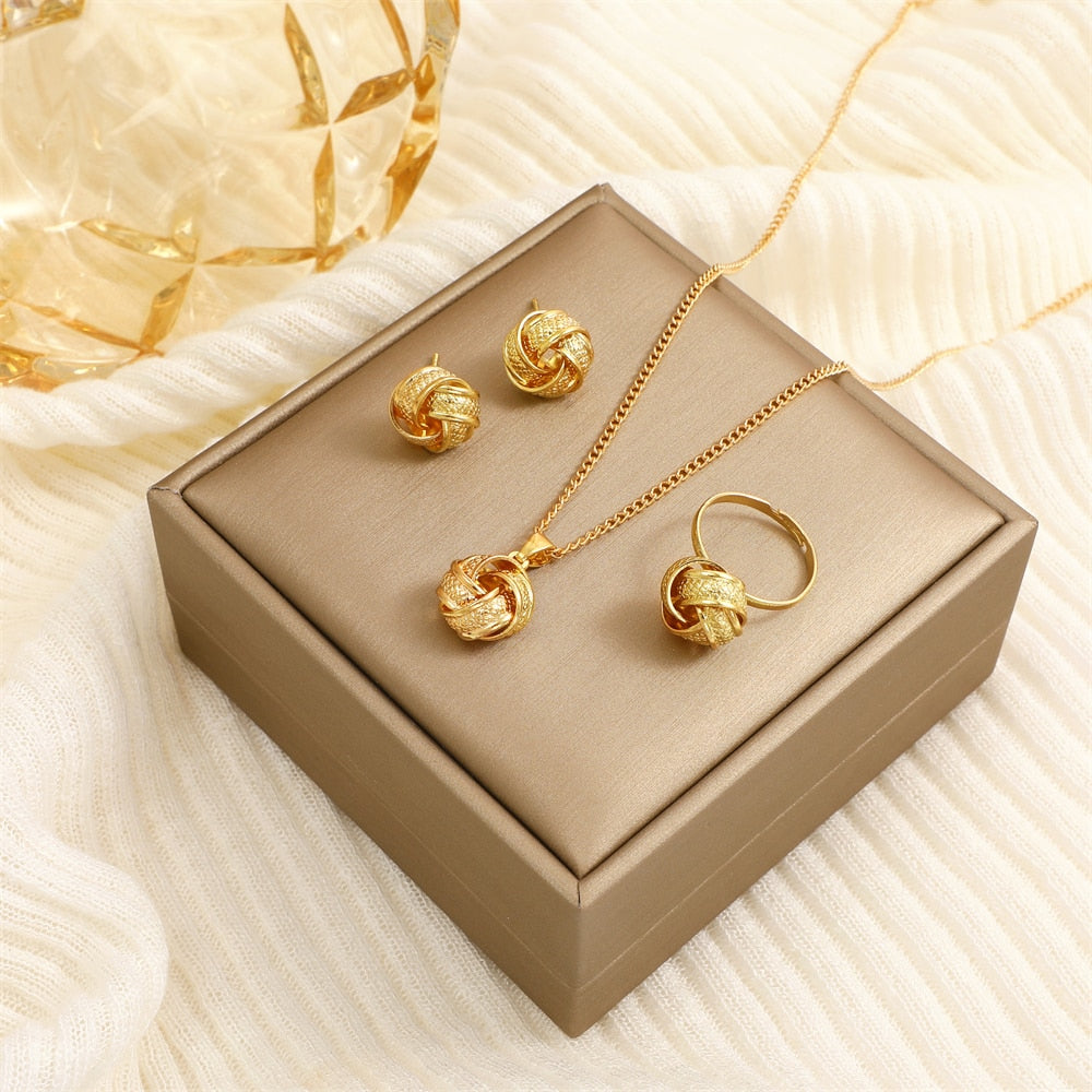 Exclusividade e sofisticação definem o Conjunto Colar, Anel e Brincos Torcidos. O design elegante e moderno traz um toque único ao seu visual. Perfeito para ocasiões especiais ou para presentear com estilo. Garanta já esse conjunto deslumbrante e eleve seu glamour a outro nível
