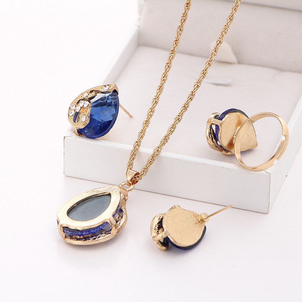 Nosso Conjunto Colar Brincos e Anel Gota com Cristais, conta com um design exclusivo e com cada detalhe pensado para completar e trazer mais beleza ao estilo de cada mulher. Você vai se sentir mais bonita e deixar sua autoestima lá em cima. Prezamos pela alta qualidade das joias, os melhores materiais, livres de uso, chumbo e todos hipoalérgicos.