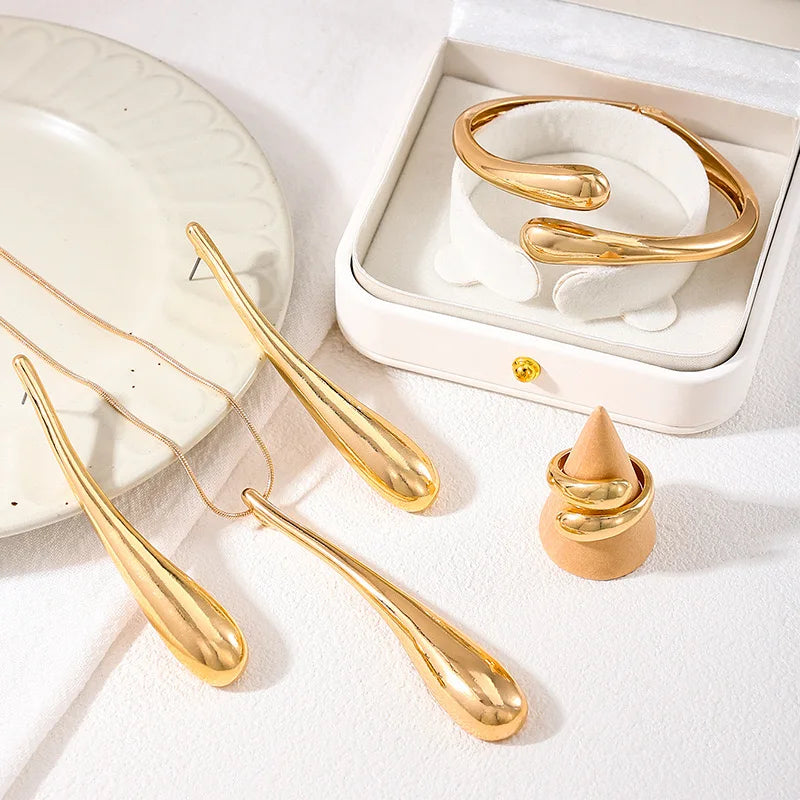 Conjunto Colar Brincos Pulseira e Anel Gota