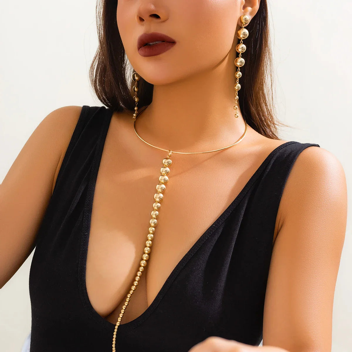 Adicione um toque de glamour instantâneo ao seu visual com nosso Conjunto Colar e Brincos Longos de bolas Douradas. Leve, sofisticado e perfeito para qualquer ocasião. Consiga o seu agora e brilhe com estilo!