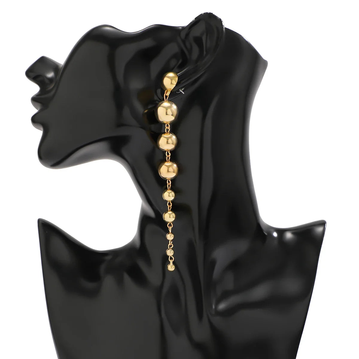 Conjunto Colar e Brincos Longos de bolas Douradas