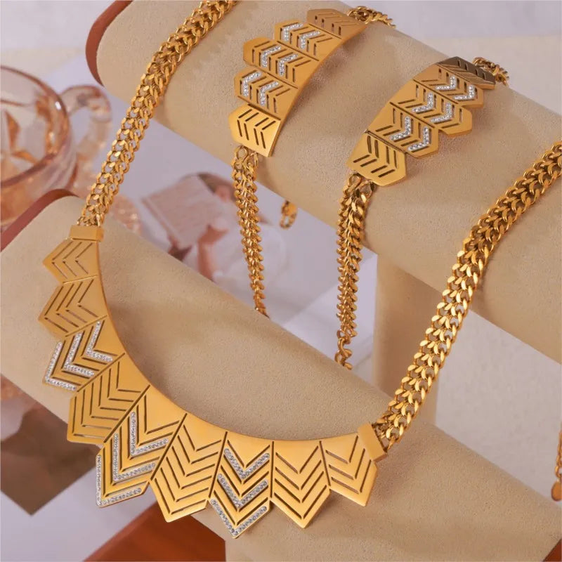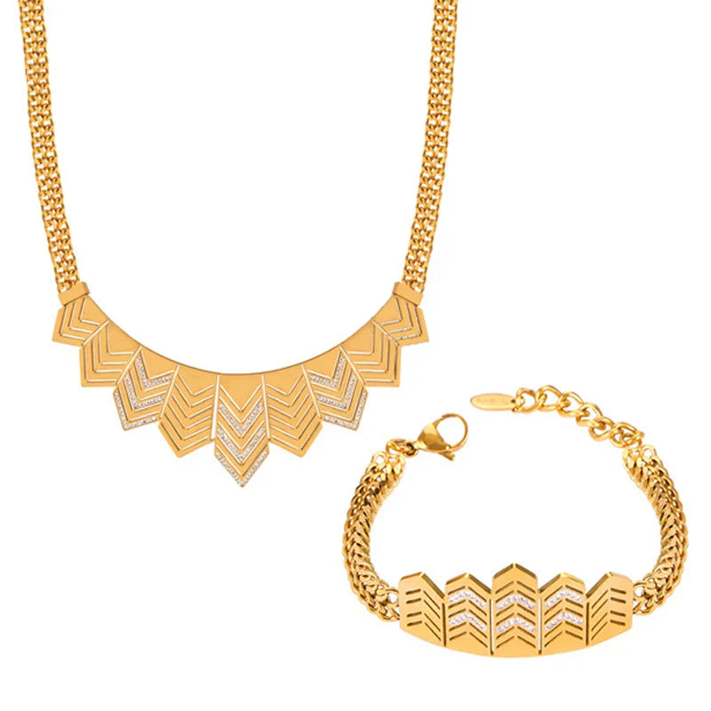 Nosso Conjunto Colar e Pulseira Legacy, conta com um design exclusivo e com cada detalhe pensado para completar e trazer mais beleza ao estilo de cada mulher. Você vai se sentir mais bonita e deixar sua autoestima lá em cima. Prezamos pela alta qualidade das joias, os melhores materiais, livres de uso, chumbo e todos os hipoalérgicos.
