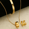 Nosso Conjunto Colar Pulseira e Brincos Dourados, conta com um design exclusivo e com cada detalhe pensado para completar e trazer mais beleza ao estilo de cada mulher. Você vai se sentir mais bonita e deixar sua autoestima lá em cima. Prezamos pela alta qualidade das joias, os melhores materiais, livres de uso, chumbo e todos hipoalérgicos.