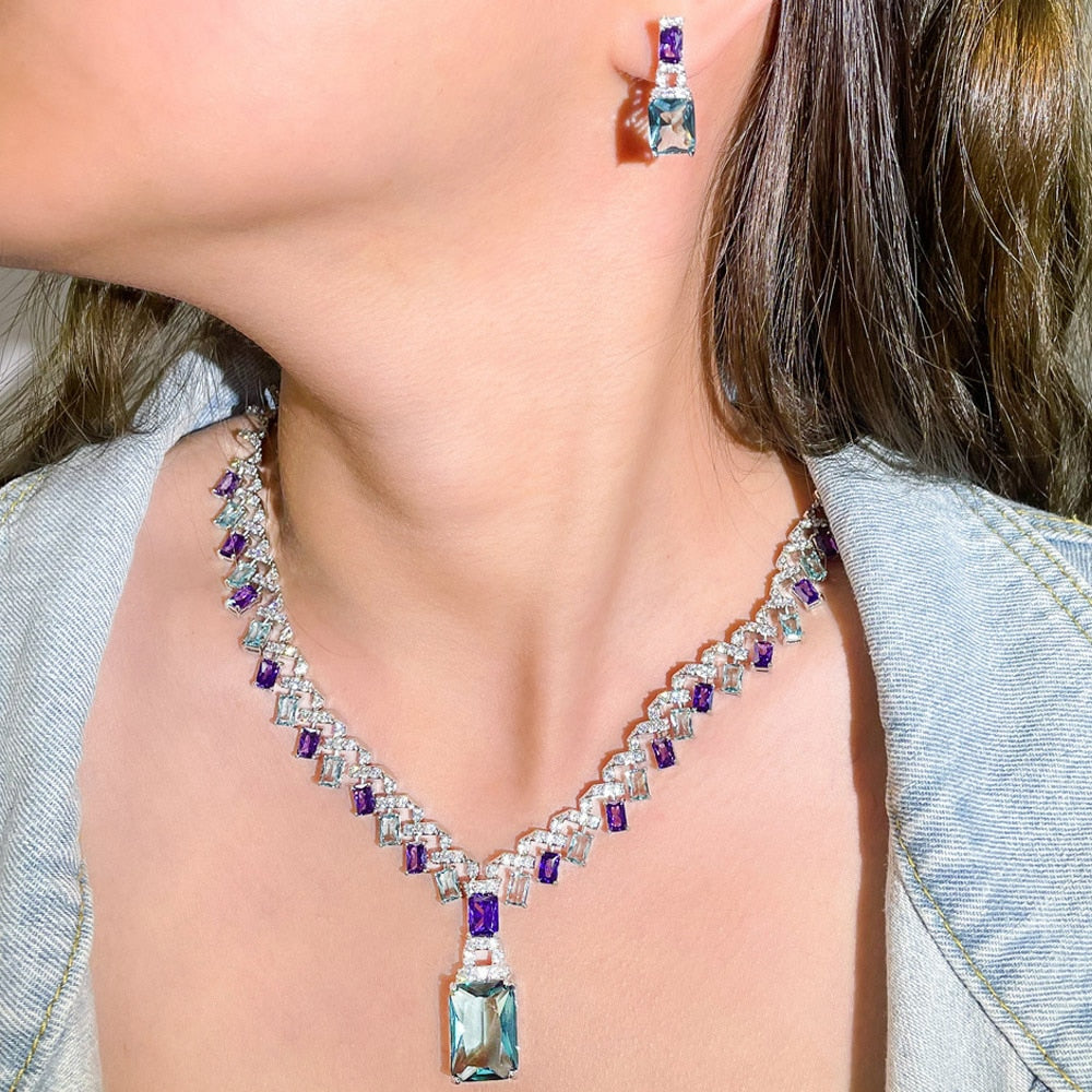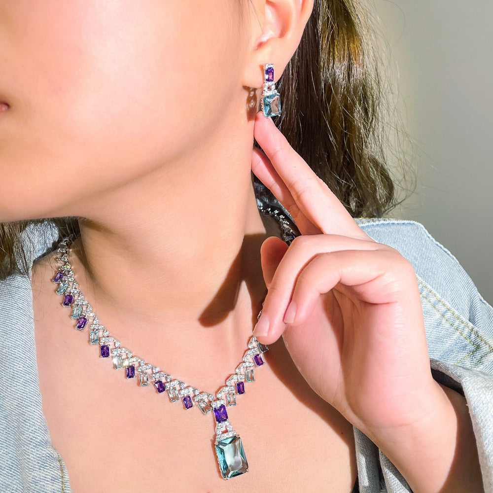 Conjunto Colar e Brinco com Cristais de Zircônia