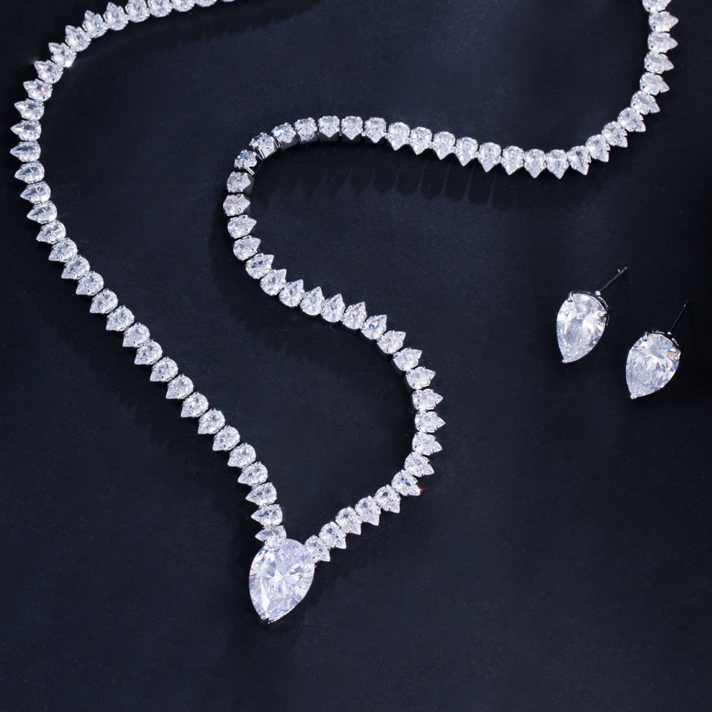 Conjunto Riviera Colar e Brincos de Cristais de Zirconia