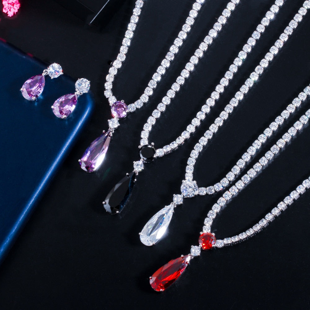 Nosso Conjunto Colar e Brincos Pingente Gota contém um design exclusivo e com cada detalhe pensado para completar e trazer mais beleza ao estilo de cada mulher. Prezamos pela alta qualidade das joias, os melhores materiais, livres de uso, chumbo e todos hipoalérgicos.