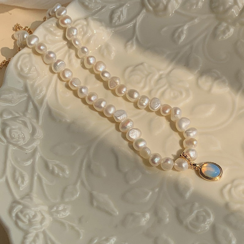 Colar com Pérolas Naturais e Pedra de Bohemia