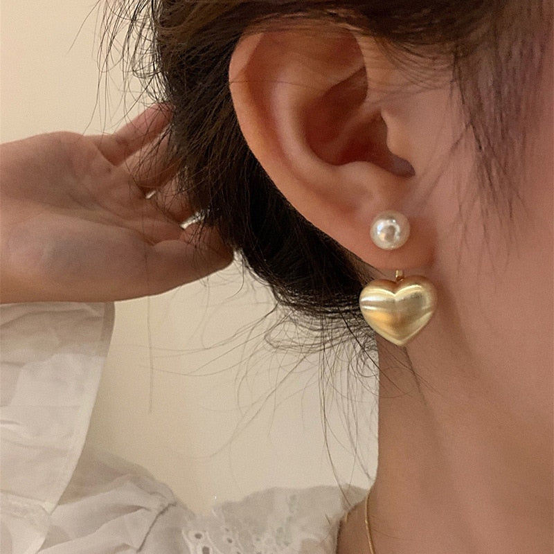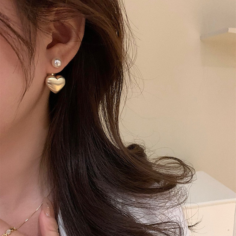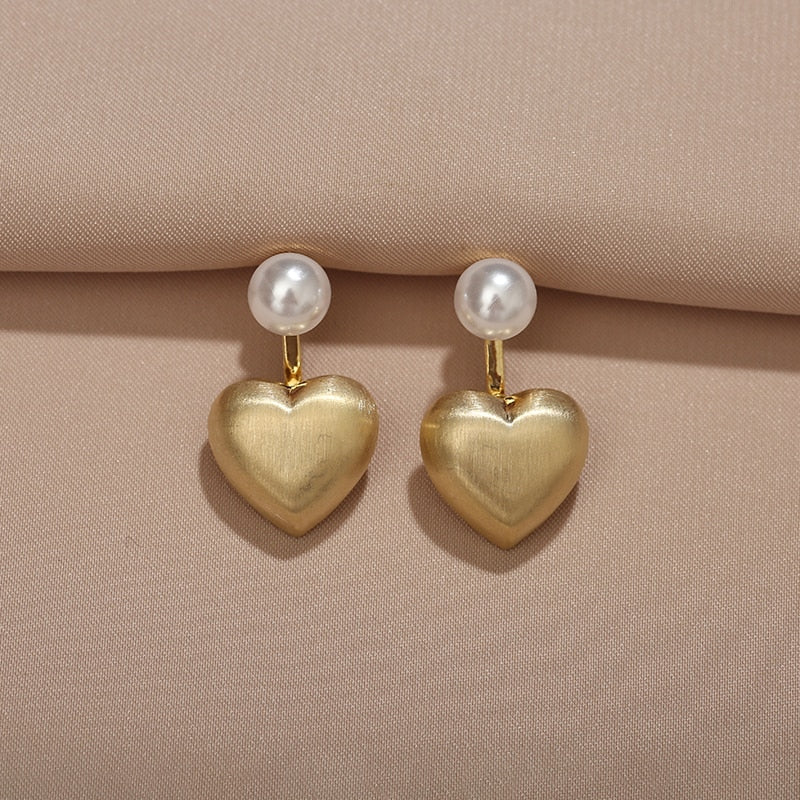 Brinco Dourado Coração com Pérola
