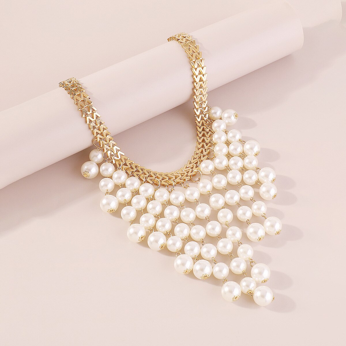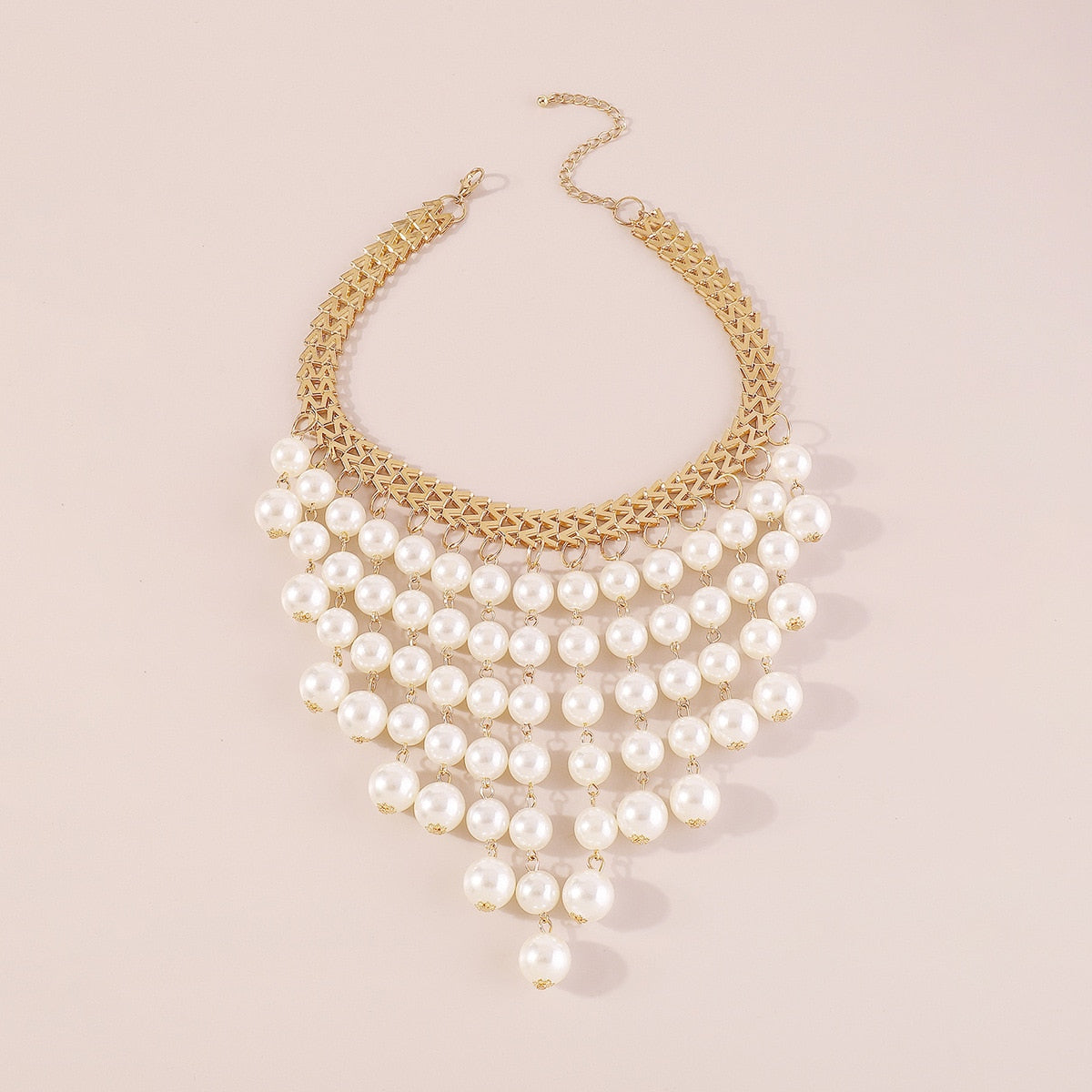 Gargantilha Cascata de Pérolas, exale glamour e elegância. Com um design deslumbrante e pérolas delicadas, essa gargantilha é perfeita para realçar sua beleza e deixar um rastro de sofisticação por onde passar. Seja o centro das atenções com esse acessório único.