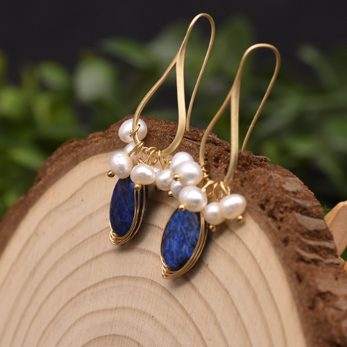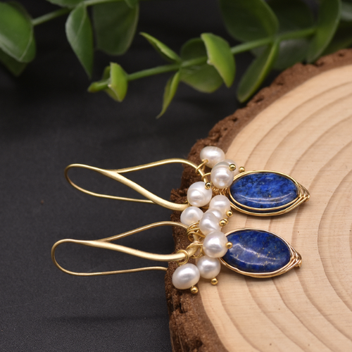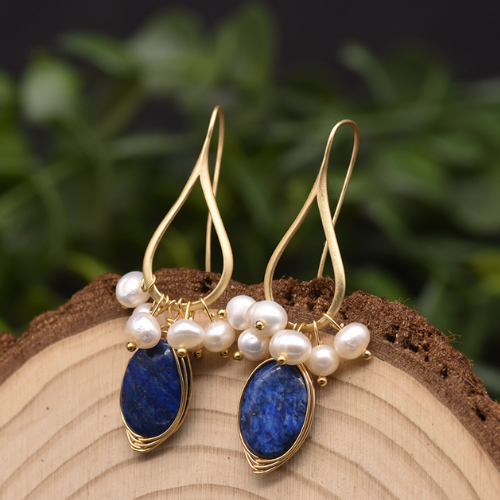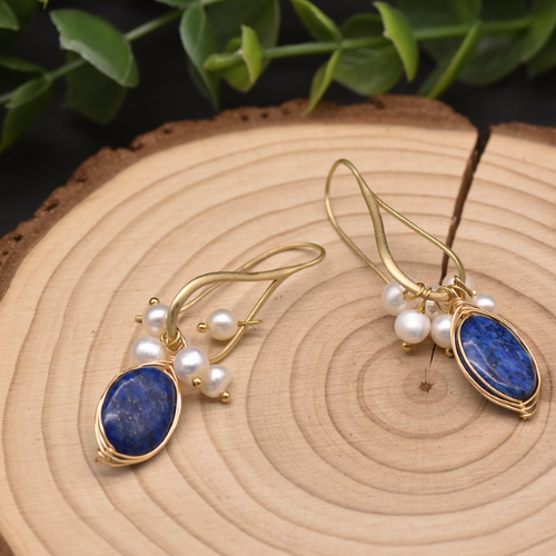 Brinco com Pérolas e Pedras Naturais