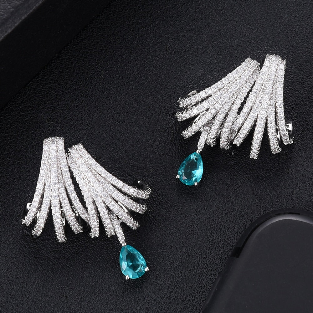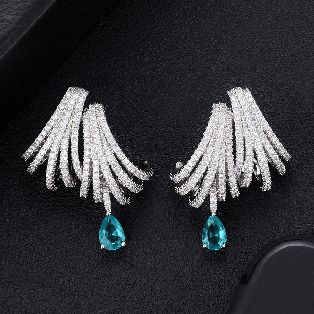 Brinco Elegante de Zircônia Branca e Azul