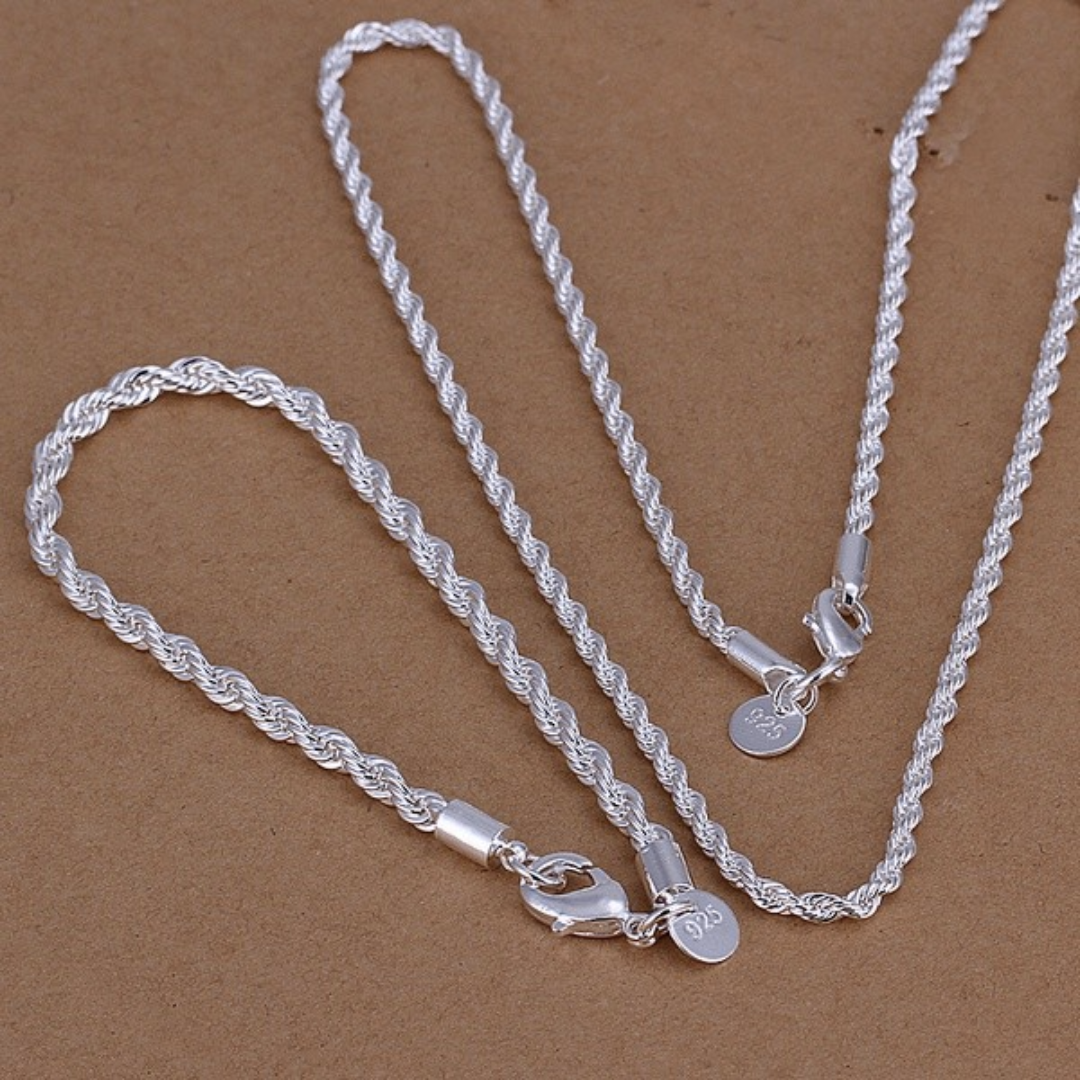 Conjunto Corrente e Pulseira Trançada em Prata 925