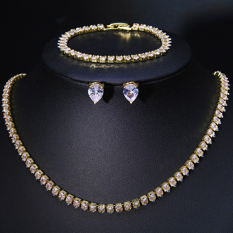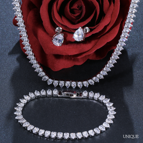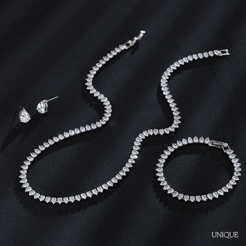 Nosso Conjunto Colar Brincos e Pulseira de Zircônia, contém um design exclusivo e com cada detalhe pensado para completar e trazer mais beleza ao estilo de cada mulher. Prezamos pela alta qualidade das joias, os melhores materiais, livres de uso, chumbo e todos hipoalérgicos.