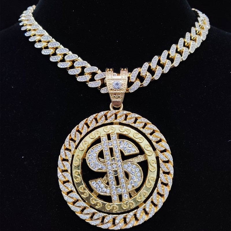 Corrente Cuban com Pingente Giratório Money Ice Cravejado