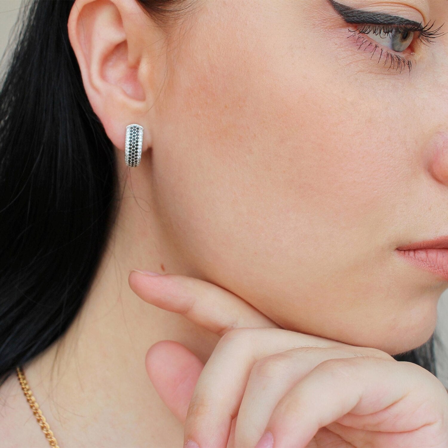 Mini Argola Cravejada com Cristais de Zircônia Pretos