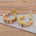 Brinco Meia Argola com Cristais Coloridos
