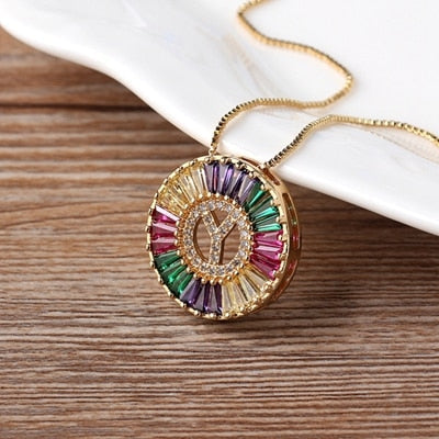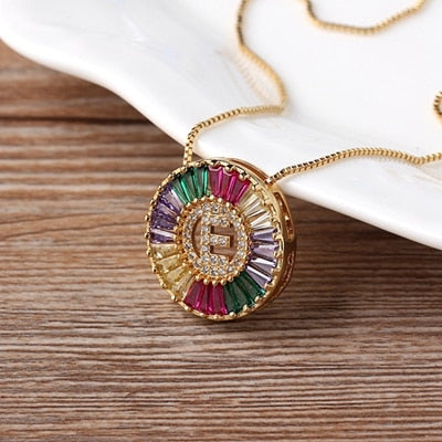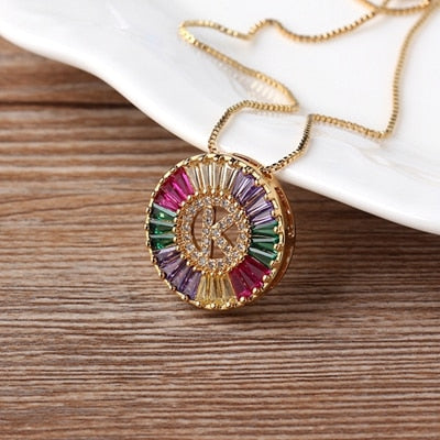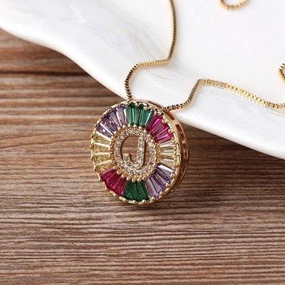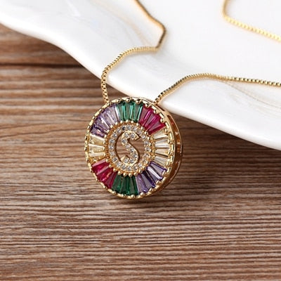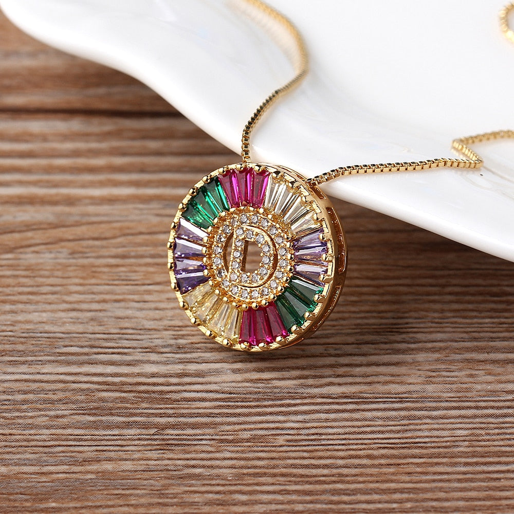 Colar com Pingente Inicial Cravejado Cristais de Zircônia Coloridas