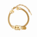 Nossa Pulseira com Fivela Banhado a Ouro, conta com um design exclusivo e com cada detalhe pensado para completar e trazer mais beleza ao estilo de cada mulher. Você vai se sentir mais bonita e deixar sua autoestima lá em cima. Prezamos pela alta qualidade das joias, os melhores materiais, livres de uso, chumbo e todos hipoalérgicos.
