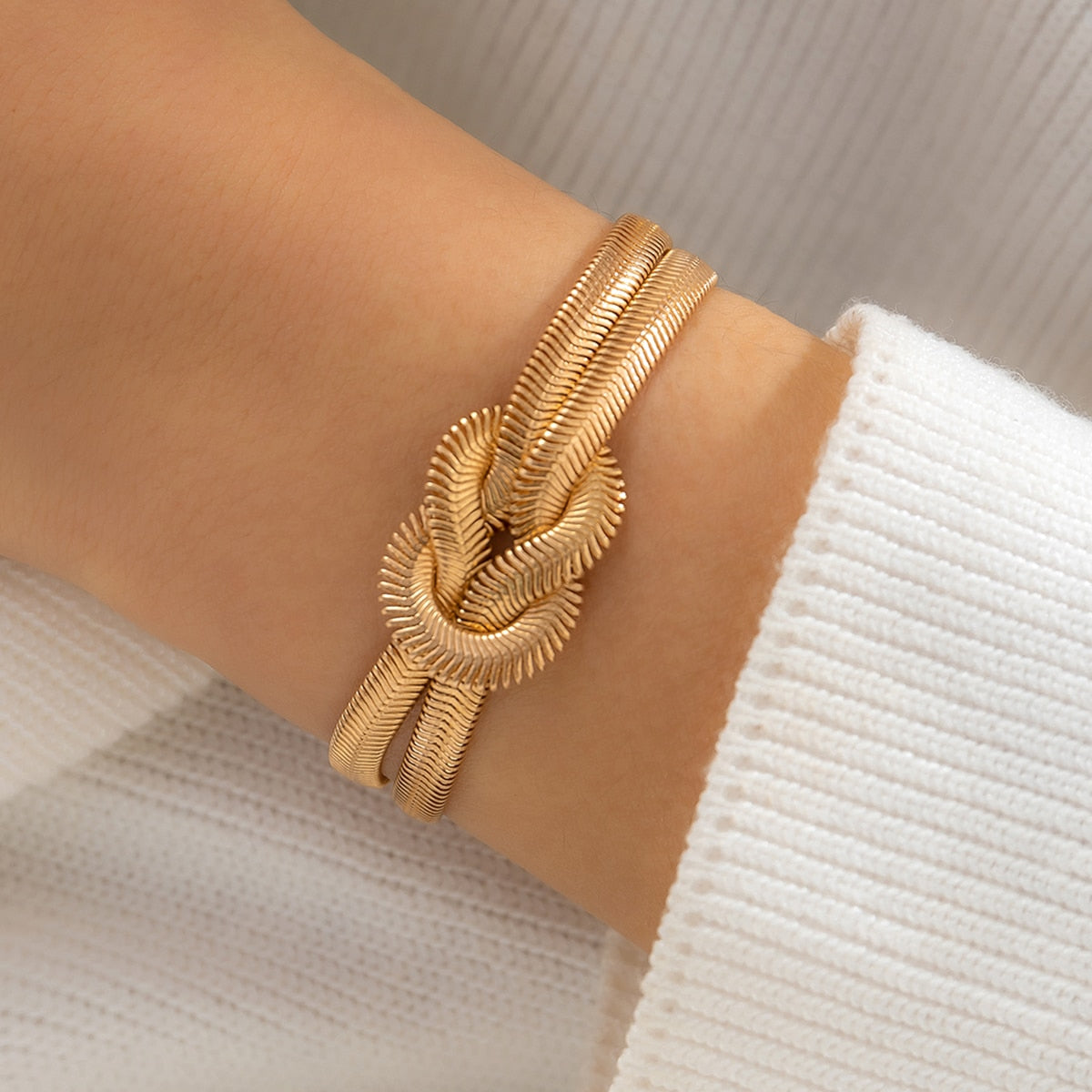 Nosso Pulseira Dourada Nó, é uma peça luxuosa e elegante que adiciona um toque sofisticado ao seu visual. Com um design de nó no centro, o colar é uma representação de um vínculo forte e duradouro, perfeito para presentear alguém especial ou para adicionar à sua própria coleção de joias. O banho de ouro 18k proporciona um acabamento brilhante e durável que resiste ao teste do tempo.