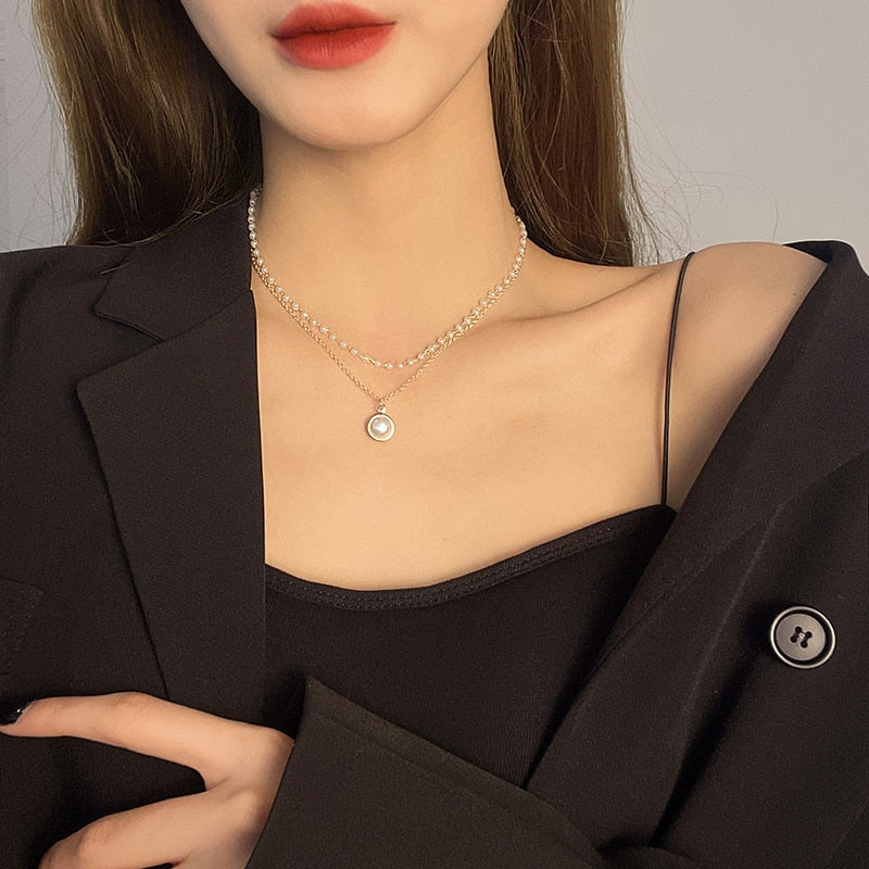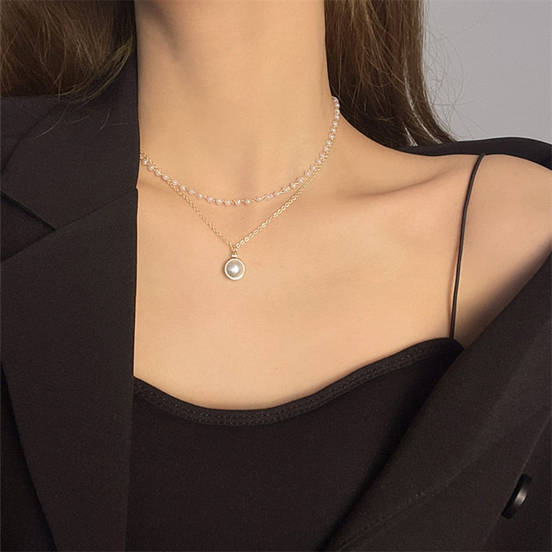 Colar Duplo Pérolas com Pingente