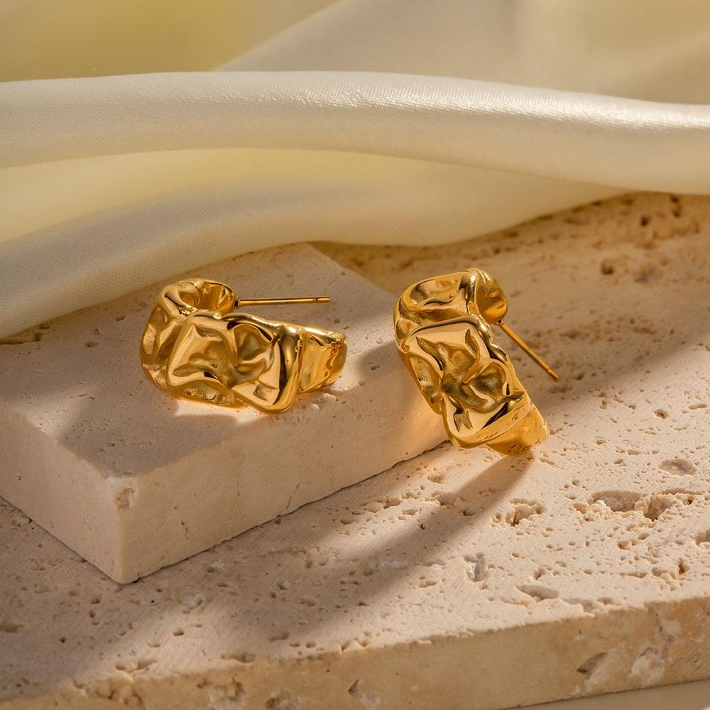 Brinco Meia Argola Irregular Banhado a Ouro 18k