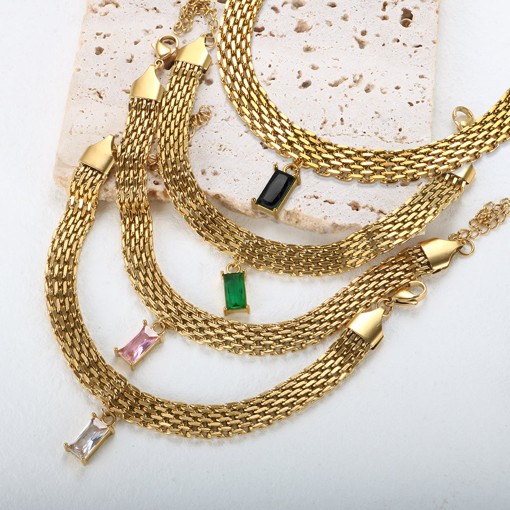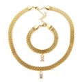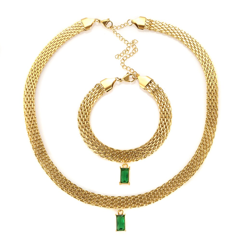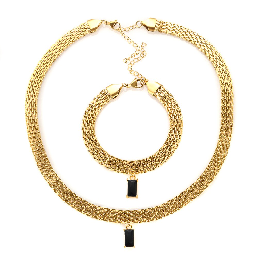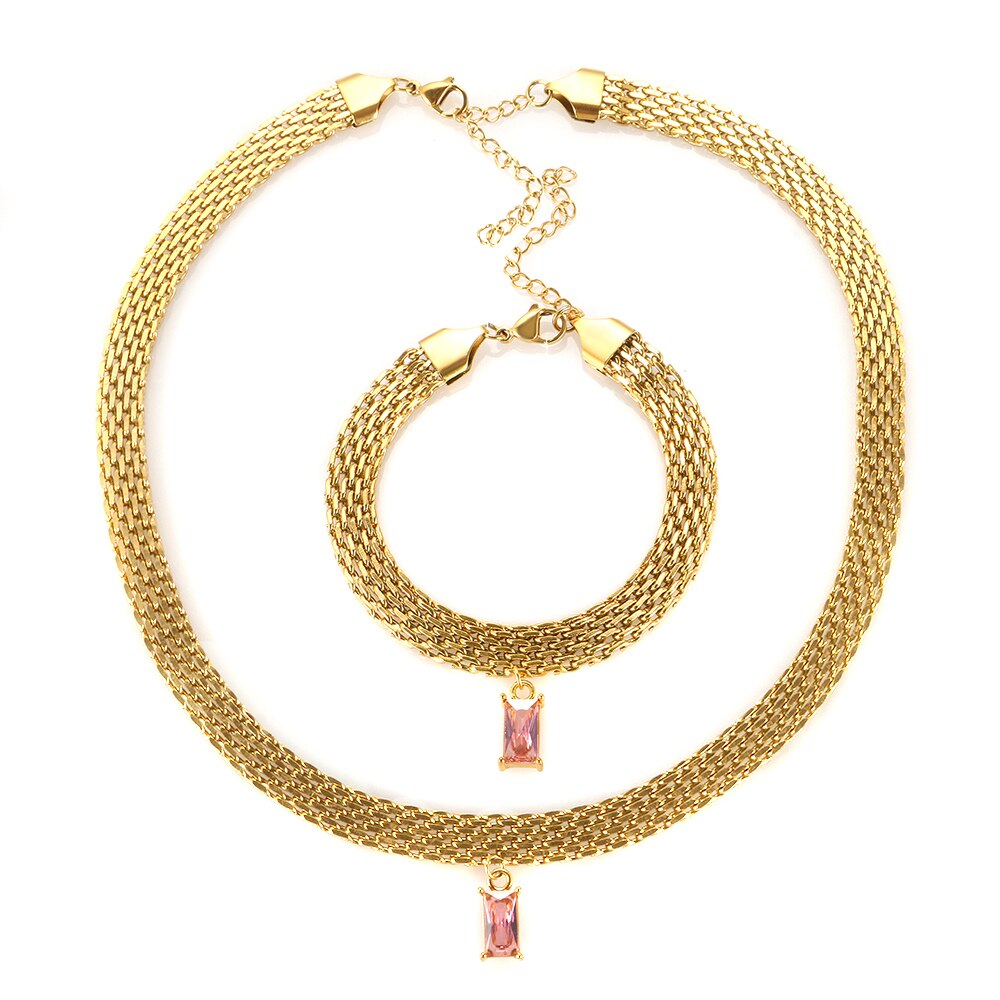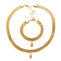 Conjunto Colar e Pulseira de Malha Dourada Pingente de Zircônia