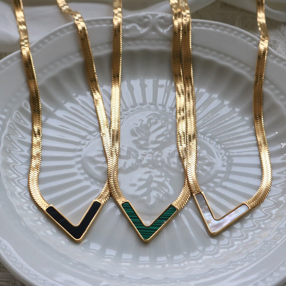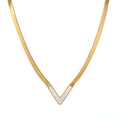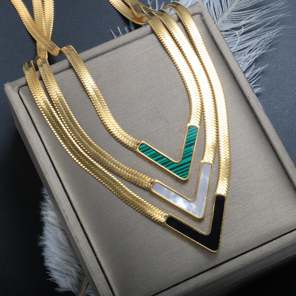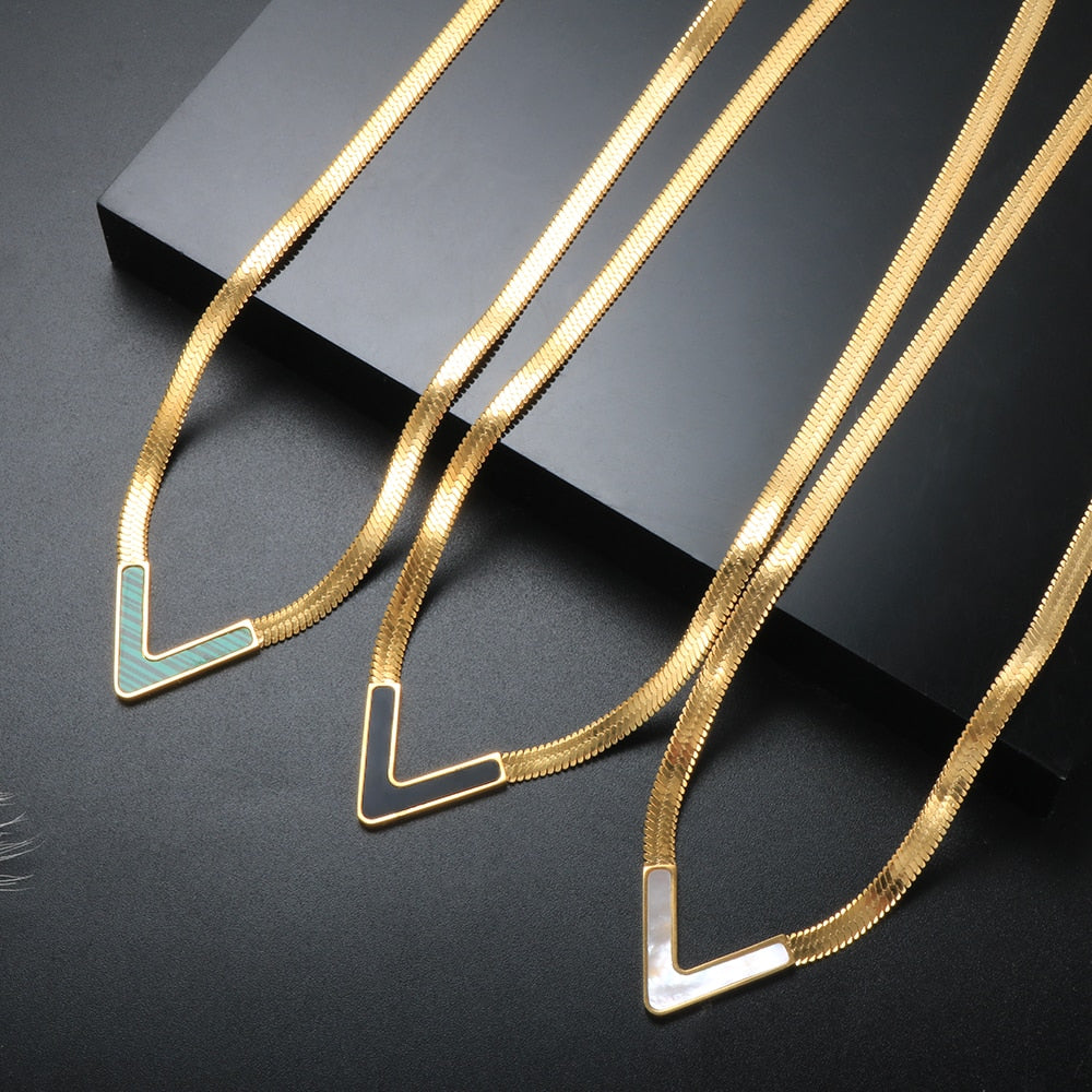 Destaque-se com o Colar Pingente em V Esmaltado. Com seu design moderno e elegante, esse colar é perfeito para adicionar um toque de estilo único ao seu visual. O pingente em formato de V esmaltado traz um charme contemporâneo e ousado. Feito com materiais de alta qualidade, garante durabilidade e brilho excepcionais.